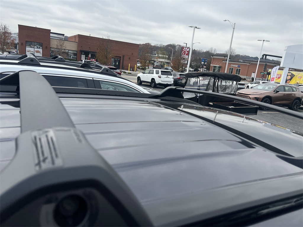 - Low-profile black roof rails