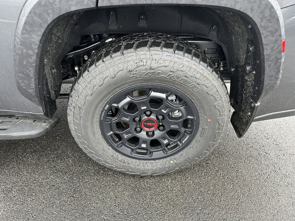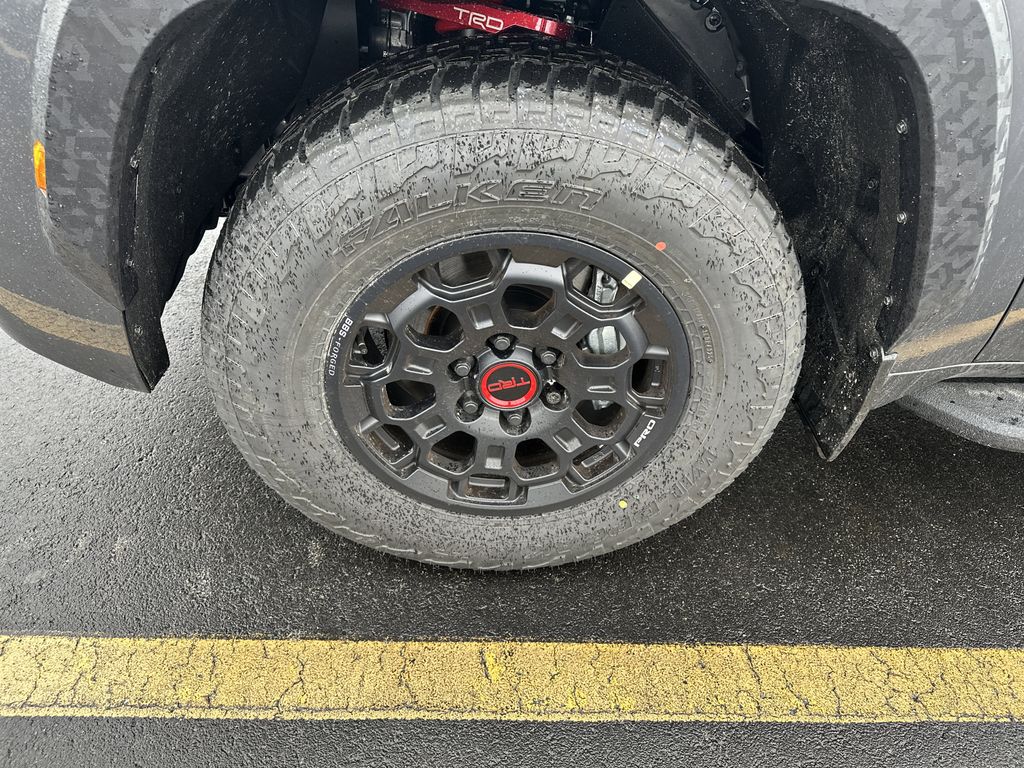 Color-keyed door handles; satin-black outside mirror caps and roof railsPremium LED headlights with black trim, LED Daytime Running Lights (DRL), sequential turn signals, and automatic leveling adjustment18-in. TRD Pro matte-black forged-aluminum BBS® wheels with TRD center caps -