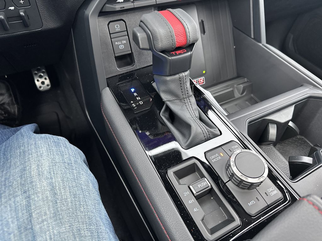 - TRD Pro red-striped leather-wrapped shift knob