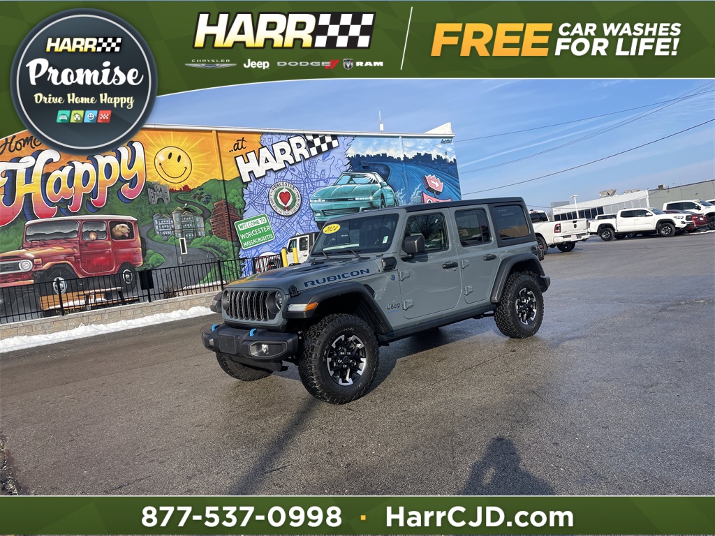 2024 Jeep Wrangler Rubicon 4xe REMAINDER OF FACTORY WARRANTY, INCLUDES WARRANTY, SERVICE RECORD AVAILABLE, RECENT HARR TRADE IN, PERFECT PRICE!, CLEAN HISTORY, ONE OWNER, 12.3" Touchscreen Display, 4G LTE Wi-Fi Hot Spot, ABS brakes, Alloy wheels, Alpine Premium Audio System, Apple CarPlay, Auto-Dimming Rear-View Mirror, Black 3-Piece Hard Top, Compass, Connected Travel & Traffic Services, Connectivity - US/Canada, Convenience Group, Disassociated Touchscreen Display, Electronic Stability Control, Freedom Panel Storage Bag, Front dual zone A/C, Google Android Auto, GPS Navigation, HD Radio, Heated door mirrors, Heated Front Seats, Heated Steering Wheel, Illuminated entry, Integrated Center Stack Radio, Integrated Off-Road Camera, Integrated Voice Command w/Bluetooth, Low tire pressure warning, No Soft Top, ParkView Rear Back-Up Camera, Passenger door bin, Quick Order Package 29V Rubicon, Radio: Uconnect 5 Nav w/12.3" Display, Rear Window Defroster, Rear Window Wiper/Washer, Remote keyless entry, Remote Start System, SiriusXM Radio Service, SiriusXM w/360L, Technology Group, Traction control, Universal Garage Door Opener.